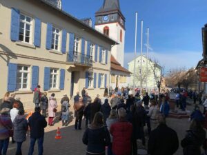Heute haben die im Wöllsteiner Verbandsgemeinderat vertretenen Parteien, sowie Kirchenvertreter an der evangelischen Kirche zu einer Mahnwache für den Frieden