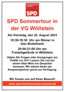 Die letzten Etappen unserer Sommertour, wir freuen uns auf gute Gespräche in Gau-Bickelheim und Wöllstein!