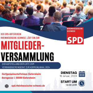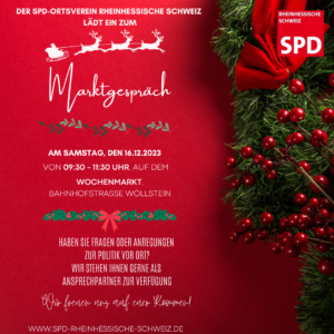Der SPD-Ortsverein Rheinhessische Schweiz wünscht frohe Weihnachten und ein glückliches neues Jahr 2024. Wir sagen auf diesem Weg auch Dankeschön […]